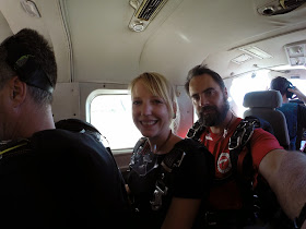 | That was Sandra's second Skydive and my first. This is Sandra not knowing how to pose for a photo! |